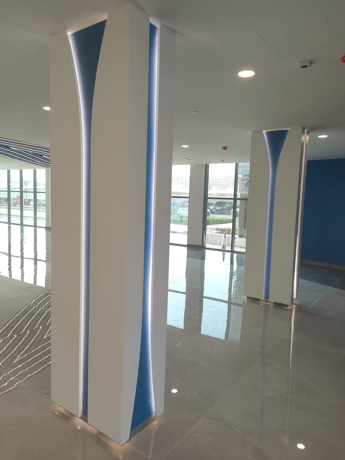 Ergonomic workspaces, high-tech control rooms, and collaborative meeting areas are designed for seamless workflow and communication. Advanced lighting, acoustic treatments, and smart technology enhance efficiency and comfort. Biophilic elements, such as indoor greenery and sustainable materials, contribute to a refreshing and environmentally conscious atmosphere.